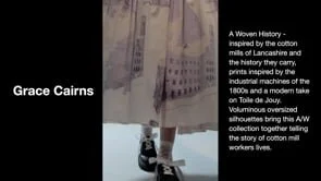 A Woven History - What happens in the past, affects our future. The industrial revolution (started in the 18th century) is a large factor of British history, creating thousands of jobs up and down the country with most being based in Lancashire. A woven history is a print collection inspired by a Lancashire mill – Quarry Bank Mill – during the industrial revolution. It focuses on the contract between clothes worn by the mill workers and the factory owners. This A/W collection has an oversized and exaggerated triangular silhouette. Fabrics such as cotton are used to represent those same materials created in the Victorian factories while more delicate fabric such as devore satin and viscose represent the wealthy factory owners. My prints are inspired by the machines housed in the cotton mills, such as the Flying Shuttle and Spinning Jenny, with a rich colour palette that consists of jewel tones with the contrast of light pastels and moodier tones of green and brown, highlighting the elitism of the 18th century. The focal point of my prints, however, is the ‘Toile de Jouy’, a picturesque print that was popularized in the 1700s.