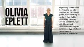 Inspired by a letter from the Kray's to my late Grandfather, this A/W 2025 tailored womenswear collection explores the juxtaposition of hardship of the Krays Era with a contemporary perspective of East London from the book 'Don't Call Me Urban by Simon Wheatley. My collection is driven by Avante Garde tailored silhouettes that are created by moulaging vintage suit jackets on the stand with period constructed bras. Shapes are manipulated through cutting and suppression using button and fastening techniques, punctuated by period and contemporary sportswear references.